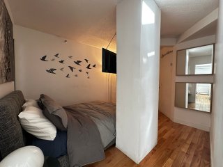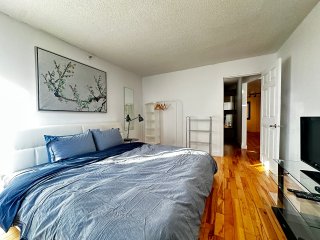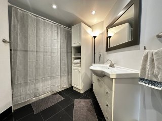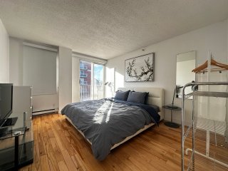 Découvrez ce magnifique et spacieux condo de deux chambres entièrement meublé. En entrant, vous êtes accueilli par une disposition à concept ouvert et lumineux. La chambre principale est attenante à la salle de bain, qui dispose de deux points d'accès. La commodité n'est pas en reste, avec une cuisine offrant un vaste espace de comptoir et une buanderie séparée pour faciliter les corvées. L'ensemble de l'unité est bien entretenu et charmant. Situé dans le même immeuble que l'hôtel Nouvel et son restaurant, et au coeur de la ville, il est à deux pas des universités et de la scène vibrante du centre-ville. C'est la vie urbaine à son meilleur.