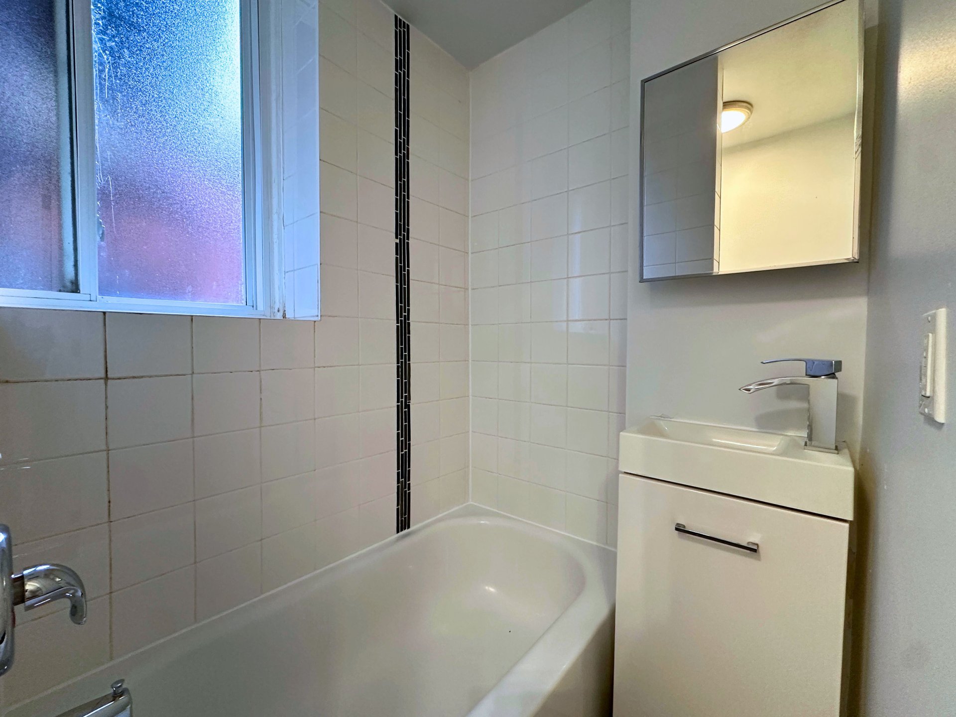 Appartement 2 chambres moderne et lumineux avec planchers au style bois et peinture neutre. Grand hall d'entrée menant au salon et aux chambres baignés de lumière naturelle. Cuisine indépendante avec armoires hautes et basses et plancher en céramique. Salle de bain avec baignoire/douche complète, vanité et fenêtre givrée. Idéal pour professionnels ou étudiants. À quelques pas des transports, commerces, cafés et toutes les commodités du centre-ville.