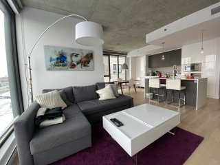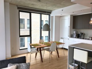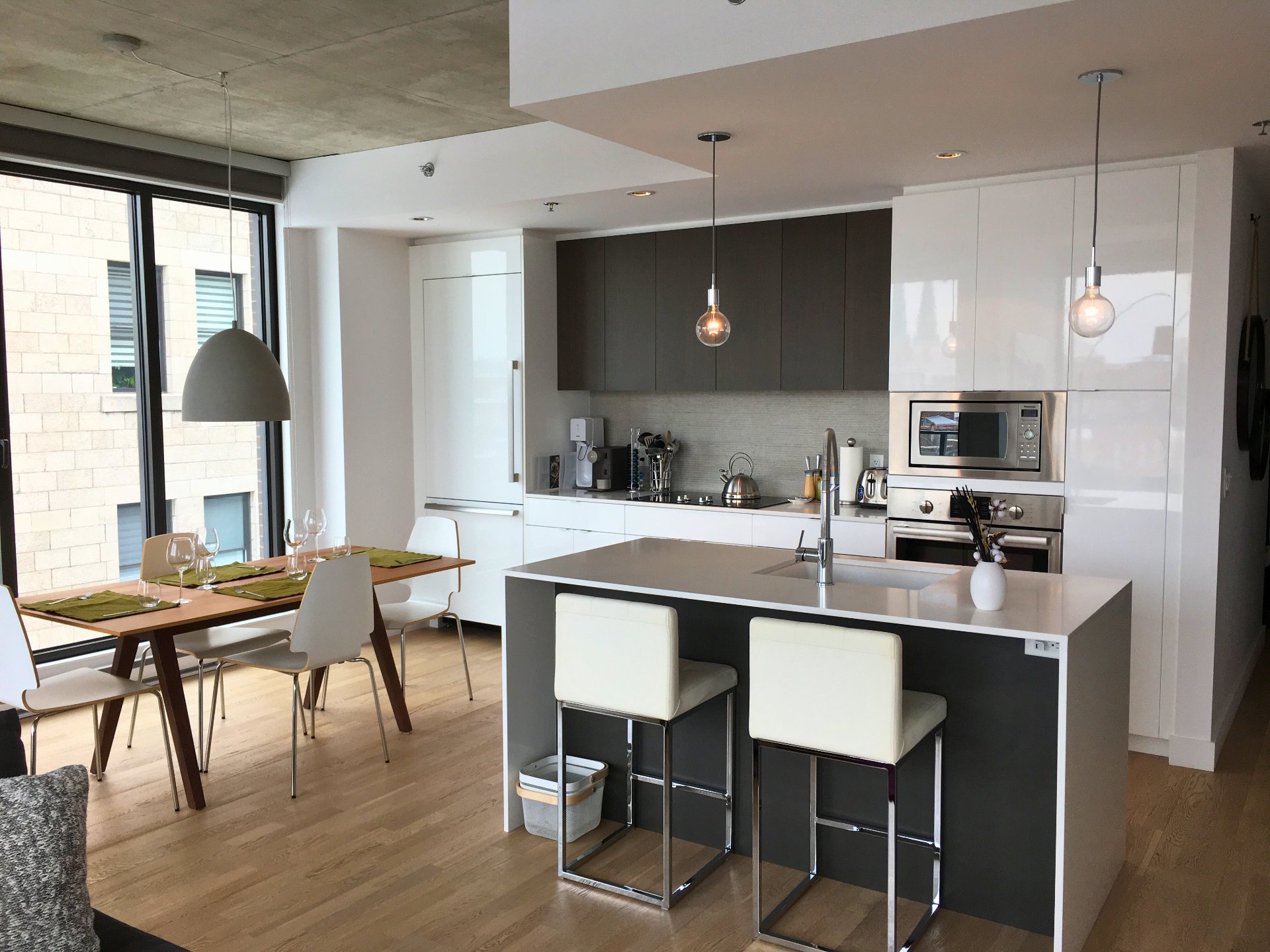 Bienvenue dans ce superbe condo entièrement meublé. Ses grandes fenêtres et ses plafonds élevés inondent l'unité spacieuse de lumière naturelle. La cuisine à aire ouverte est équipée d'appareils électroménagers haut de gamme, complétée par de magnifiques comptoirs en quartz et un îlot de cuisine. La chambre principale dispose d'un grand dressing et d'une salle de bains attenante avec double vasque. La 2e chambre offre de la polyvalence en tant que bureau à domicile ou espace de couchage supplémentaire. Sortez sur le balcon privé pour vous détendre. Pour une commodité ultime, cette unité comprend également un garage et un casier de rangement.